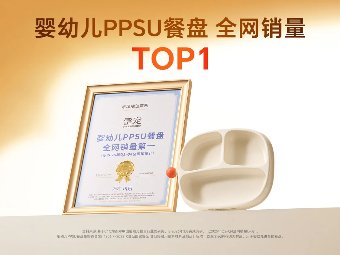 皇宠获CIC灼识权威认证 稳坐婴幼儿PPSU餐盘全网销量榜首